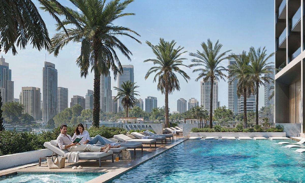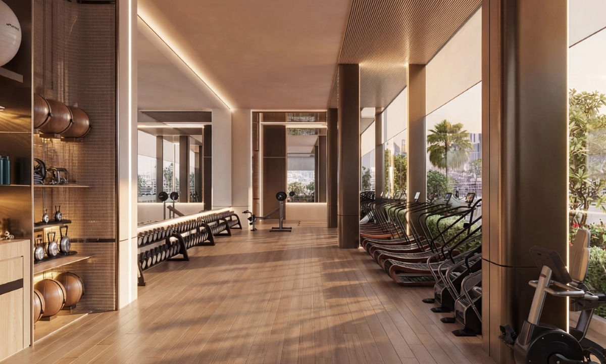 The building stands as a powerful symbol of excellence, offering a poised way of life for those who value privacy. Every element, from the podiums to the crowning roof, is a testament t to Binghatti’s pursuit of perfection and our unwavering belief in the exceptional.Luxuria offers a masterfully zoned amenity deck located on the 5th floor. This resort-style space is designed to help residents move from the city’s energy to a weighted lull in a single breath. The L-shaped deck includes a lap pool, a jacuzzi and sunken sitting areas that keep sightlines clear while creating intimate social nooks. Active zones, including an outdoor gym and yoga platform, are balanced with passive green spaces and cabanas for total restoration.