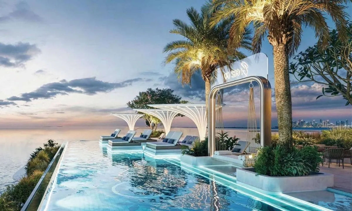 - Infinity pool with sea views, floating cabanas, and sky lounge.